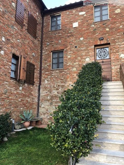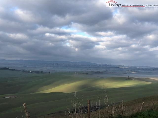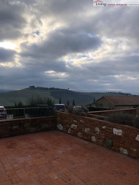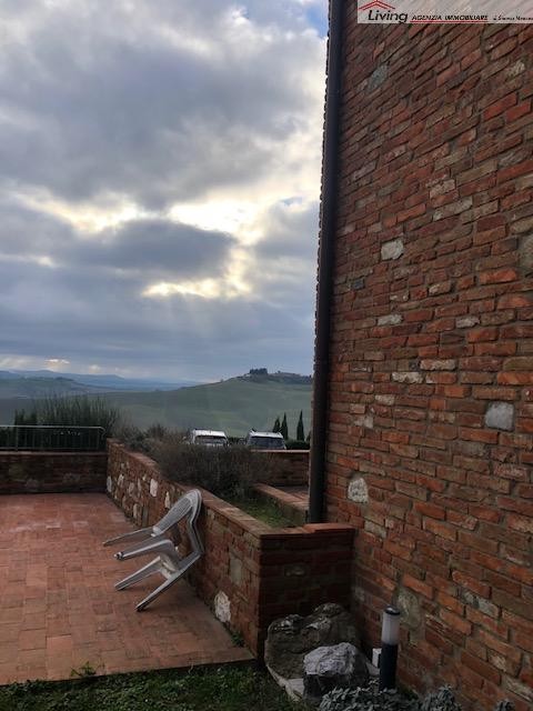 CRETE SENESI. In posizione dominante, in piccolo Borgo, terratetto con ingresso indipendente e con giardino privato. Composto da soggiorno con angolo cottura e bagno al piano d'ingresso, due camere e bagno al piano sopra e stanza con caminetto. Completa la proprietà un garage. Piscina condominiale. L'immobile è stato ristrutturato e gode di un bel panorama sulla campagna. In attesa di certificazione energetica. Richiede € 195.000,00. Rif. V643