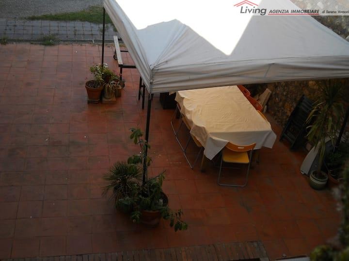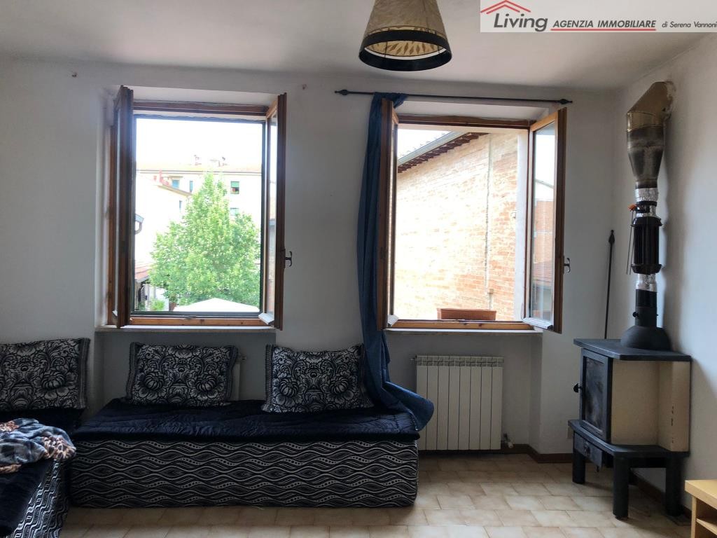 MONTERONI D'ARBIA. In centro, terratetto mq. 100 composto da appartamento al piano primo, disposto con soggiorno con angolo cottura, camera matrimoniale e bagno e al piano terreno locali uso negozio con resede privato e con la possibilità di rendere i due piani collegati. Buone condizioni. Certificazione energetica F. Richiede € 150.000,00. Rif. V679
