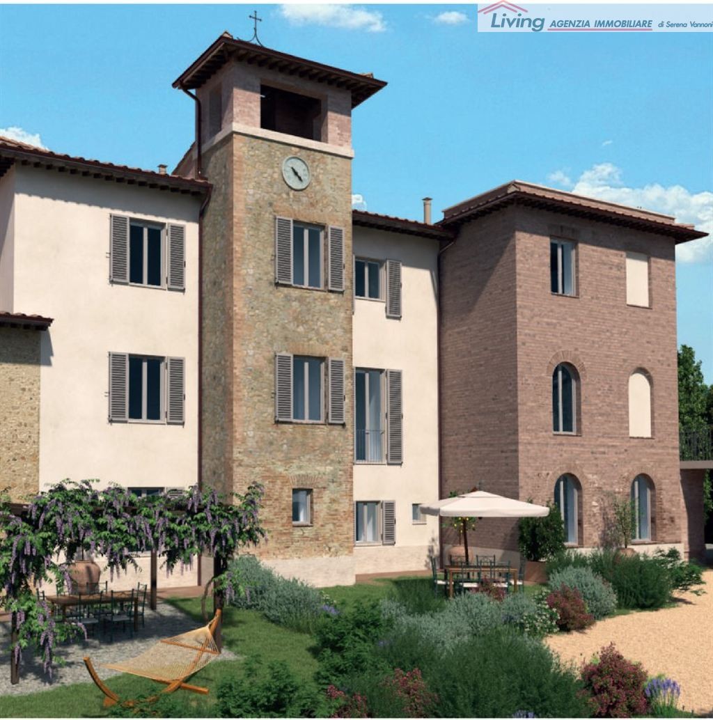A 5 km da Siena nella Zona di Pieve a Bozzone, in posizione collinare, ristrutturazione di appartamenti in villa e nel rispettivo borgo. Varie metrature con giardino privato, e parco condominiale, piscina. Gli appartamenti saranno realizzati in Classe energetica A3 con riscaldamento a pavimento e raffrescamento con pompa di calore, e un impianto di deumidificazione e ventilazione meccanica controllata. Le rifiniture saranno di altissima qualità con possibilità da parte dell'acquirente di poter scegliere da un capitolato molto ampio. Vi presentiamo nello specifico un appartamento di mq.186 composto da ingresso, ampia zona living, cucina pranzo, due camere, due bagni ripostiglio, loggiato, terrazzo al piano primo, sopra terrazzo panoramico, due posti auto e resede privato. Classe energetica A3 Rich. € 735.000,00 RIF. V 861-10