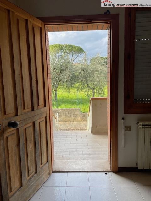 SOVICILLE. In zona riservata, appartamento al piano primo con ingresso indipendente dal giardinetto di proprietà e composto da ingresso soggiorno, cucina abitabile con balcone, due camere da letto entrambe con balcone e due bagni finestrati. Completano la proprietà rustico e garage al piano sottostante collegato internamente all'appartamento. Buone condizioni, luminoso. In attesa di certificazione energetica. Richiede € 165.000,00. Rif. V660